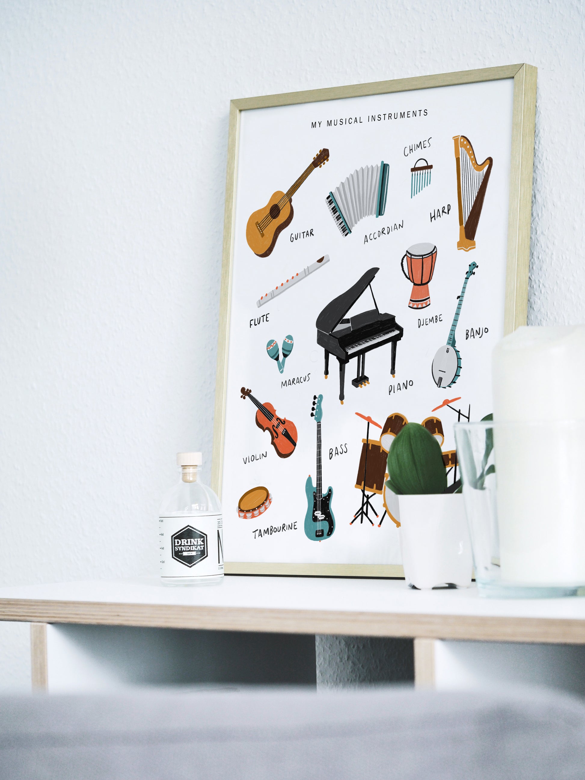 "My Musical Instruments" turns any room into a lively musical adventure! With colorful and fun illustrations of various instruments, this decor piece sparks curiosity and invites children to explore the world of sound and rhythm.